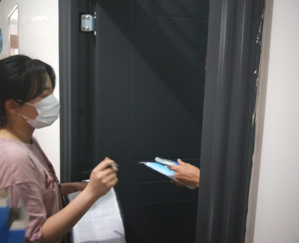 辅导员来到学生宿舍看望返校学生,给学生们发放口罩和体温计,并与他们进行了深入交流,亲切询问了学生返校过程、回校后感受以及目前所面临的困难,希望学生们认真遵守学院疫情防控各项规定,积极配合校园防疫工作开展,做好每日两次体温检测,做好个人安全防护。
