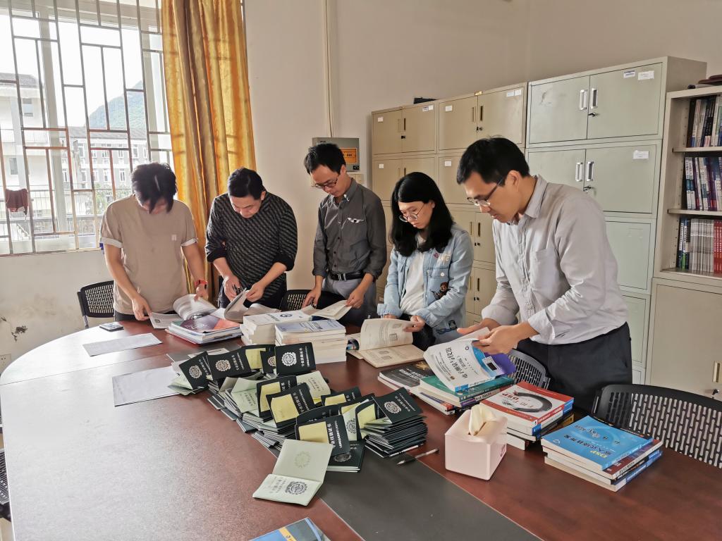 10月4日,电子工程系在41402办公室组织开展教材排查工作。系主任助理易艺、各专业教研室主任及教师代表参加排查工作。