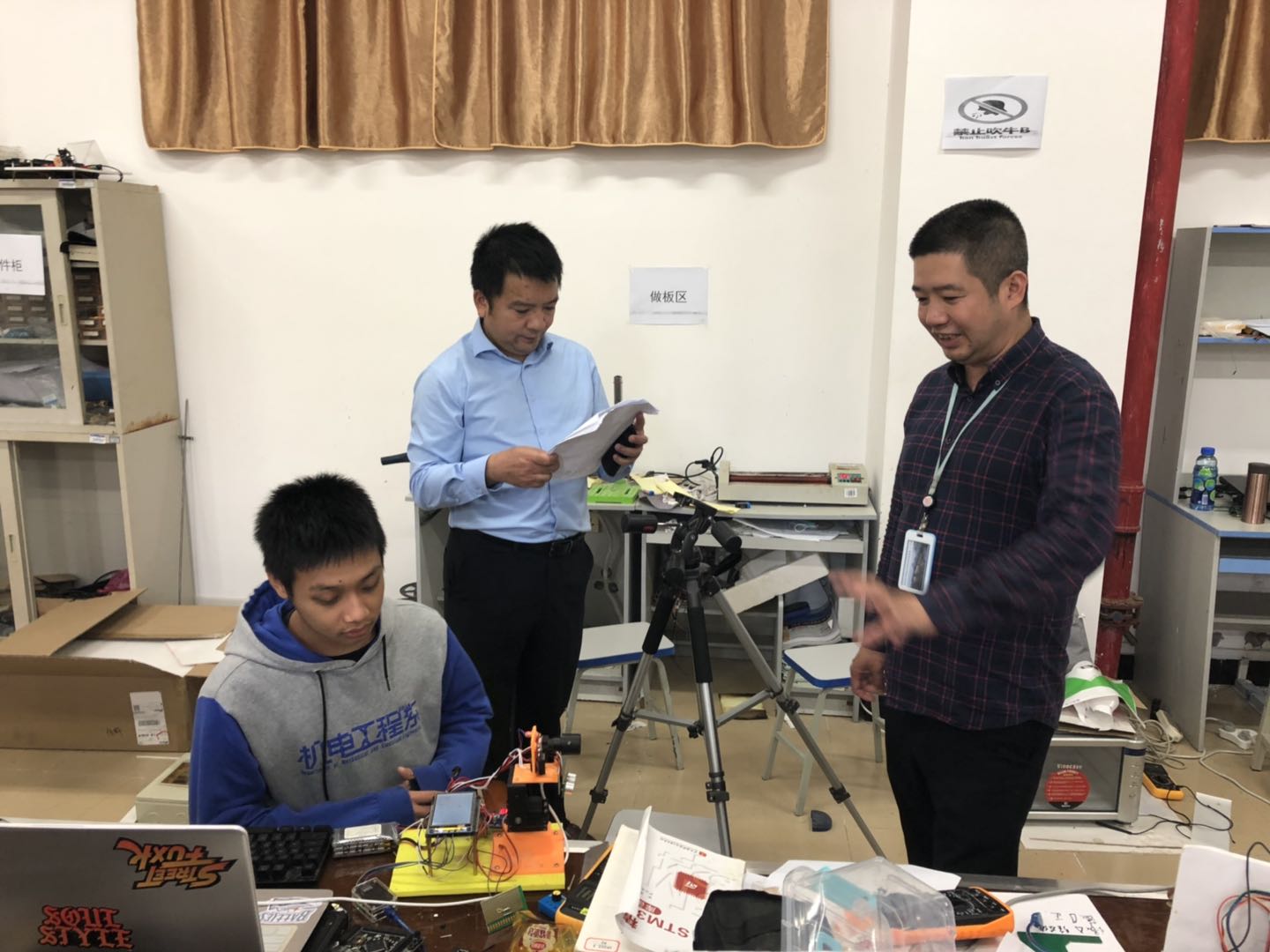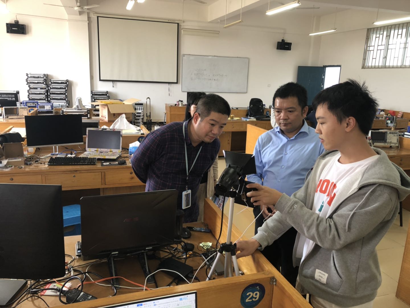 10月13日,2020年广西大学生电子设计大赛接近尾声,我院副院长周胜源、招生就业部副部长谢如欢、电子工程系副主任韩桂明亲临大赛现场,了解大赛情况。