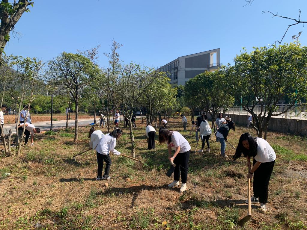 分工明确后,大家拿着各种工具,来到三号公寓绿化带、五教篮球场按照分配的任务开始劳动。在活动现场,大家干劲十足,充分发挥了团结协作精神,整个劳动场面热火朝天。同学们先用除草工具将杂草连根除去,再由负责施肥的同学施肥,最后由负责清杂草的同学将已铲除的杂草向外清理,一切都有条不紊地进行着。