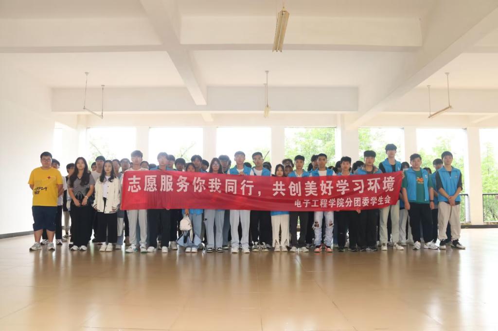 为倡导绿色文明的生态观念,结合爱国卫生运动,维护整洁卫生的校园生活环境。5月26日中午,电子工程学院开展以“志愿服务你我同行,共创美好学习环境”为主题的志愿服务活动,组织学生清扫电子工程学院实验室。