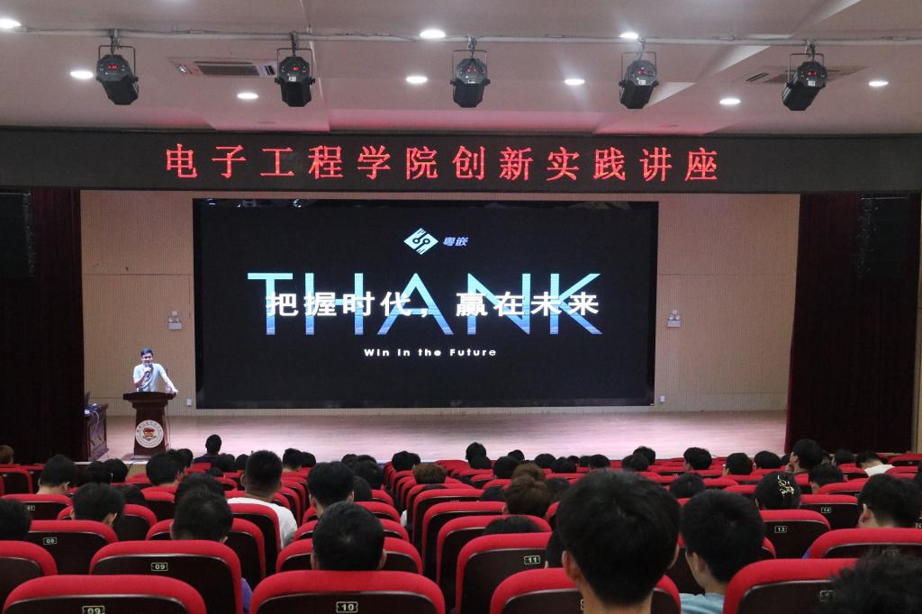 为了进一步提高大学生科技创新思维能力,激发创新精神和研究热情。6月13日晚,电子工程学院在51206报告厅开展“科技之光”系列活动之创新实践讲座。本次讲座邀请到了国家高等院校师资培训特邀专家——广州粤嵌通信科技股份有限公司联合创始人、副总裁、粤嵌研发事业部总经理邓人铭作为主讲人,我院共200名学生参加讲座。