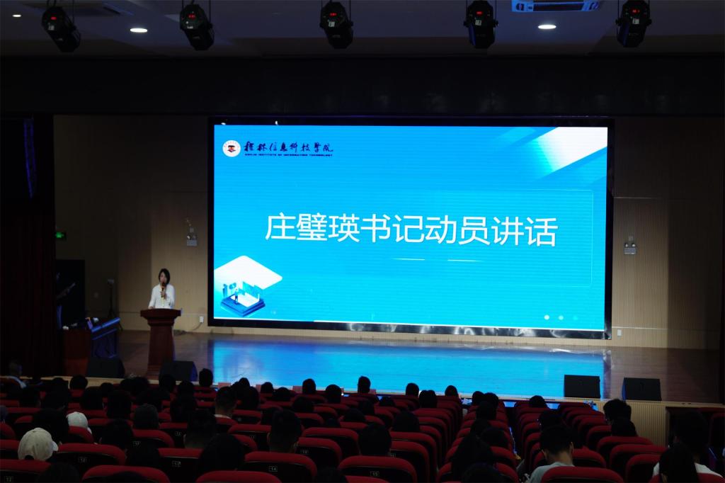 会上,学院院长韩桂明做了就业形势报告,分析了2023届毕业生就业面临的机遇与挑战,同时积极引导毕业生改变就业观念,他强调2023届毕业生就业工作已经进入关键时期,毕业生要增强就业紧迫感,提高就业积极性。随后,学院党总支书记庄璧瑛做了就业动员讲话,她勉励广大毕业生要找准目标,引导毕业生树立正确的就业观,鼓励大家敢于“走出去”找工作,抓住机会,勇敢尝试,尽快找到自己心仪的就业单位。