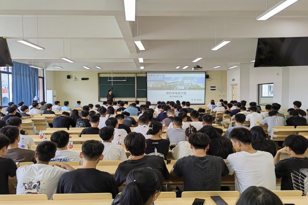 为做好专升本新生入学教育工作,让新生更好的了解所学专业,进一步树牢专业思想,提高学习兴趣,8月26日下午,电子工程学院分别在5409、5408等五间教室,开展学院电子信息工程、自动化、测控技术与仪器、电子信息科学与技术、物联网工程专业介绍会,本次会议由各专业教研室主任主讲,2021级全体专升本新生参加会议。