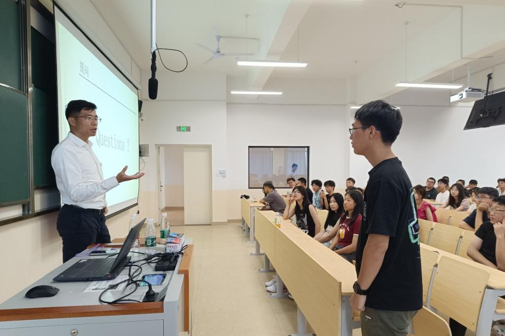 讲座中,蒋鑫博士从半导体器件分类、半导体行业周期性、半导体工艺流程格局、半导体产业链分布图等方面讲解半导体产业,让同学们深入了解半导体芯片产业链;从半导体制造商格局变化、尺寸缩减+3D结构化、半导体设备MSH等方面发展的讲解,让大家认识半导体芯片的发展趋势。蒋鑫博士鼓励同学们要勤奋学习、多思考多实践、不断提高自身综合能力。在交流互动环节,同学们积极提问,蒋鑫博士结合自身扎实的专业知识认真给予解答。