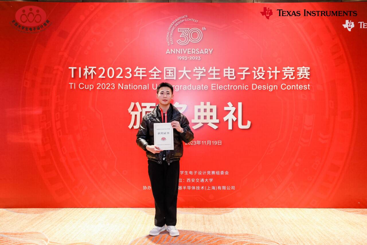11 月 19 日,2023 年度 TI 杯全国大学生电子设计竞赛颁奖典礼暨全国大学生电子设计竞赛 30 周年庆典在北京隆重举行,全国优秀参赛队伍代表受邀前往北京接受表彰。beat365官网电子工程学院获奖指导教师代表韩桂明和学生代表秦发胜、梁璐受邀参加此次盛会。