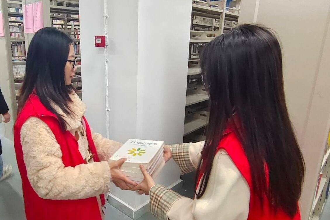 志愿者在搬运书籍