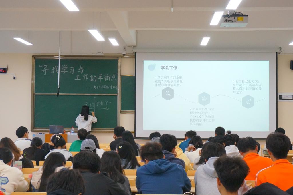 为了进一步提高我院学生干事的工作能力和水平。11月7日,电子工程学院在D408开展“寻找学习与工作的平衡点”的干事培训。此次讲座由我院2022级辅导员陈思宇主讲,两委成员共同参加。