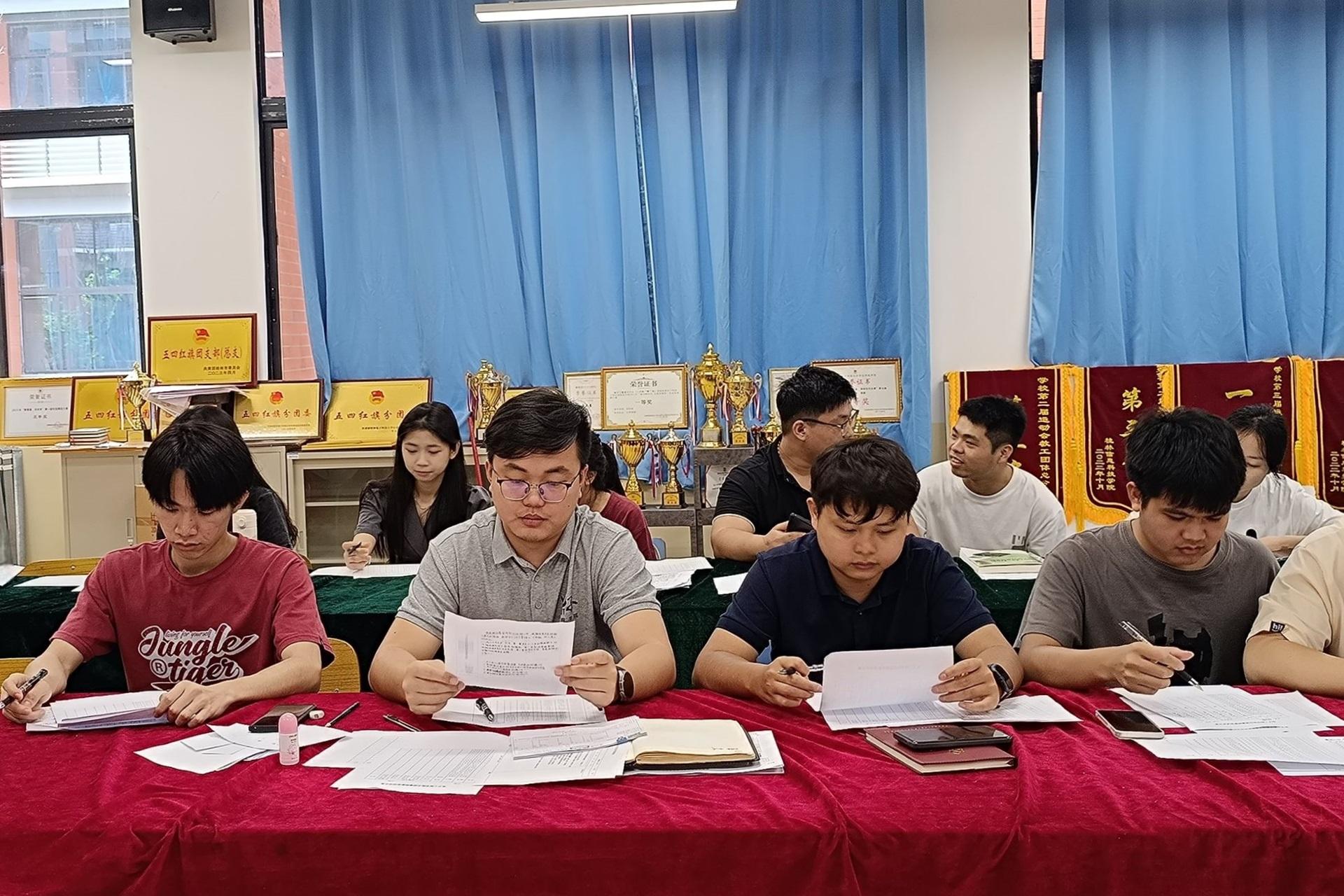 为了更好地服务广大同学,电子工程学院于5月7日、8日在敦明楼A103教室开展第三届分团委学生会委员竞选面试活动。本次活动由我院分团委副书记朱济亨、2023级辅导员曾桐宇以及分团委学生会各部门主要负责人担任面试官,共有31名两委干事参与此次竞选。