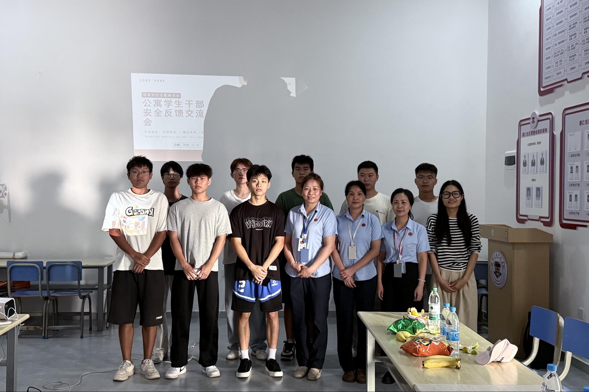 2025年10月15日,电子工程学院与后勤服务中心共同组织召开公寓学生干部安全反馈交流会。赵宁晓、李嘉欣两位指导老师、后勤管理服务人员以及崇仁楼全体楼层长共同参会,围绕“提升学生安全意识、共建平安和谐公寓”主题展开深入交流。