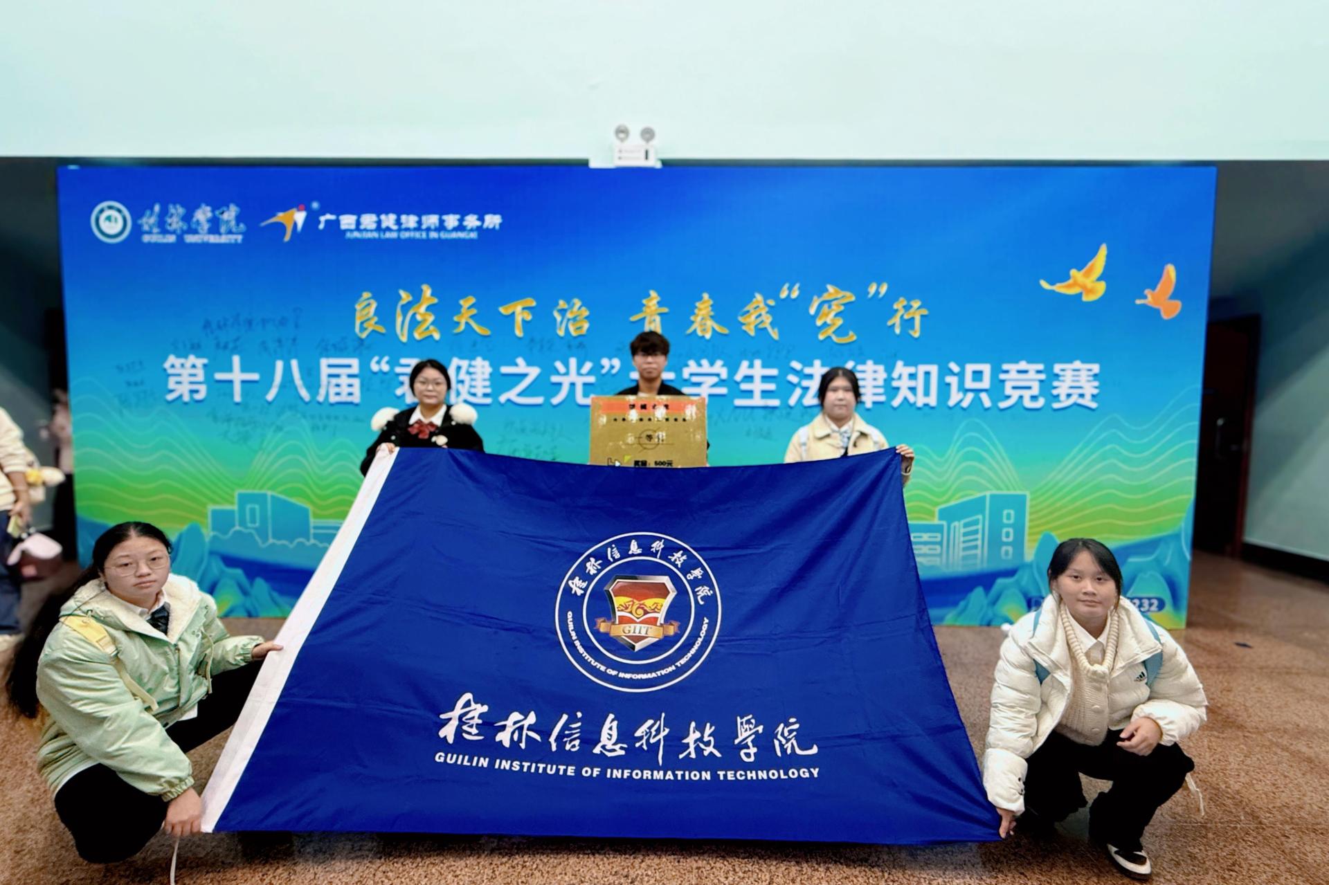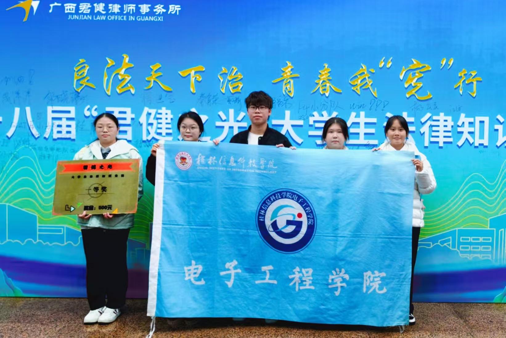 12月10日,第十八届“君健之光”法律知识竞赛决赛在桂林学院顺利举行。经过多轮激烈角逐,“信科·青年之声”法治宣讲团代表队凭借扎实的法律素养、敏捷的思维能力和出色的现场发挥,最终在非专业组中脱颖而出,一举夺得冠军。