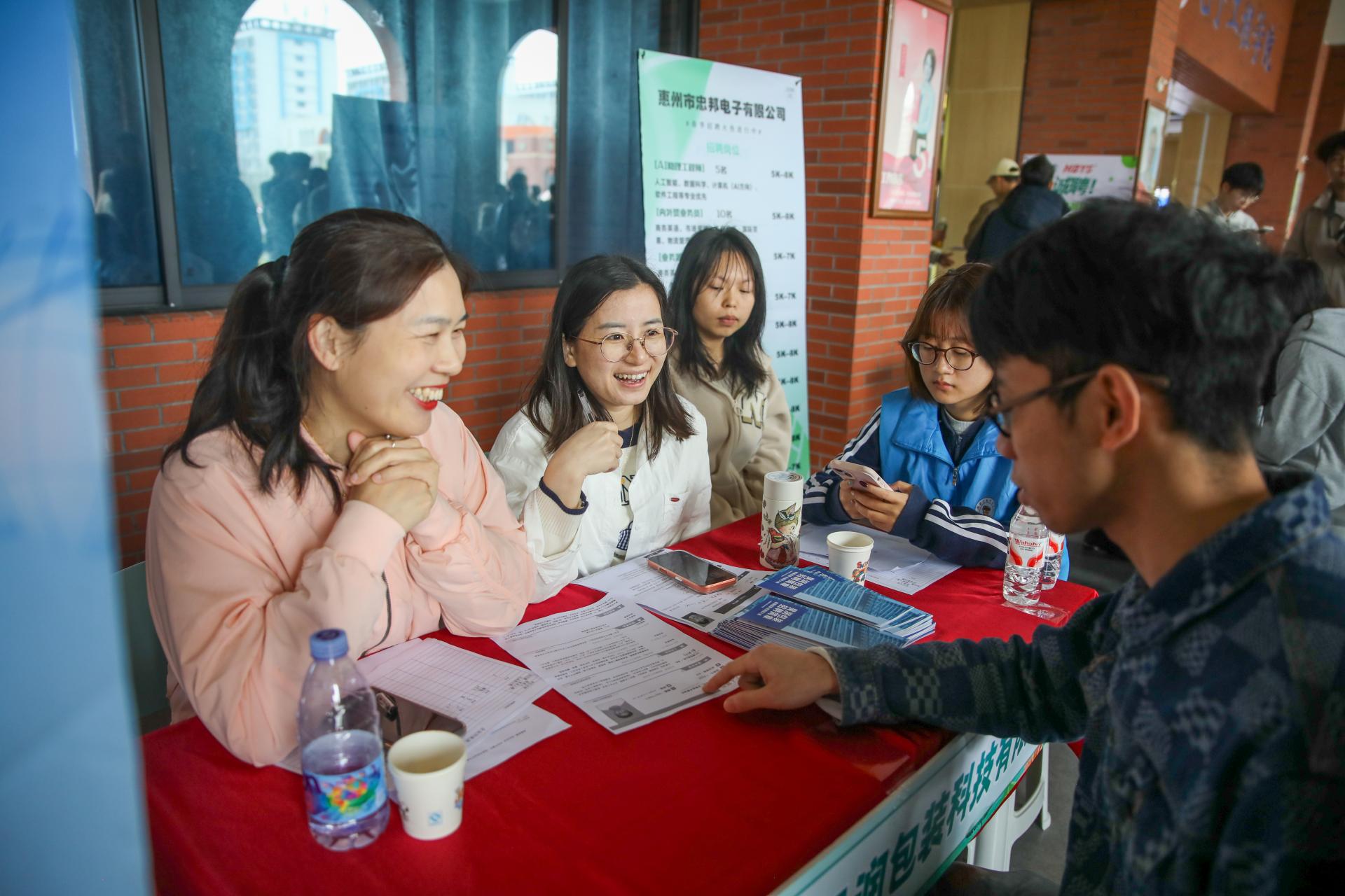 为进一步做好毕业生就业服务工作,搭建毕业生与用人单位双向选择平台,3月18日,由beat365官网与惠州市人力资源和社会保障局联合主办的2026年“南粤春暖·桂在有你”春季校园招聘会在敦明楼一楼连廊顺利举行。本次招聘会由学校就业指导服务中心与电子工程学院共同承办。