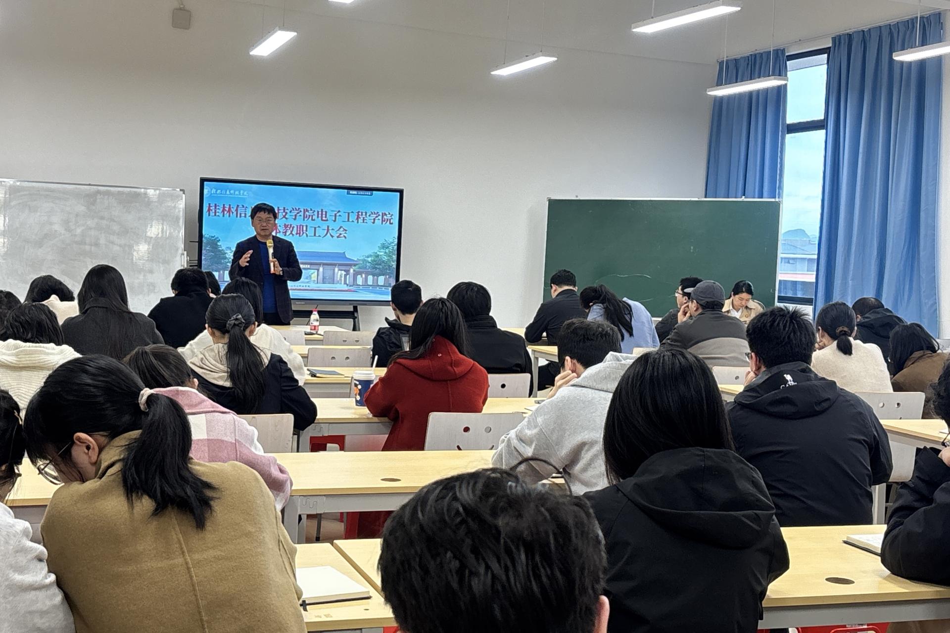 为统筹部署本学期学院各项重点工作,明确发展方向、压实工作责任,凝聚全体教职工育人合力,3月27日,电子工程学院在敦明楼A504会议室召开2025学年春季学期全院教职工大会,学院党委书记梁自珍主持会议,学院领导班子及全体教职工参加会议。