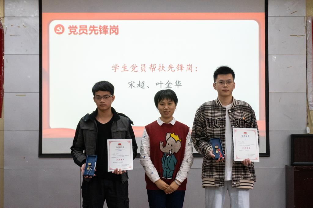 会上,池老师就先锋岗成立一年来概况作出总结,对学生党员取得的成绩表示肯定。同时,要求党员们树立“有岗有责有为”的观念,也希望每一位学生党员都能立大志、做实事。在表彰环节中,应邀老师分别对宿舍、学习、帮扶、科技创新四个岗位表现突出的八名学生党员颁发证书。随后在新一届启动仪式中庄老师进行发言,她指出学生党员过去一年在各岗位上尽心尽力帮助周围同学,充分发挥先锋模范作用,真正做到“一个党员一面旗”。她指出学生党员们应以本次先锋岗启动仪式为契机,为我院党建工作建设添砖加瓦。最后王南萍老师总结发言,她提到我院自成立先锋岗以来在带动师生积极投身到各项活动中成效显著,希望我们的学生党员可以牢记党员身份与责任,爱党忠于党,充分发挥党员的带领作用,不忘初心,砥砺前行。