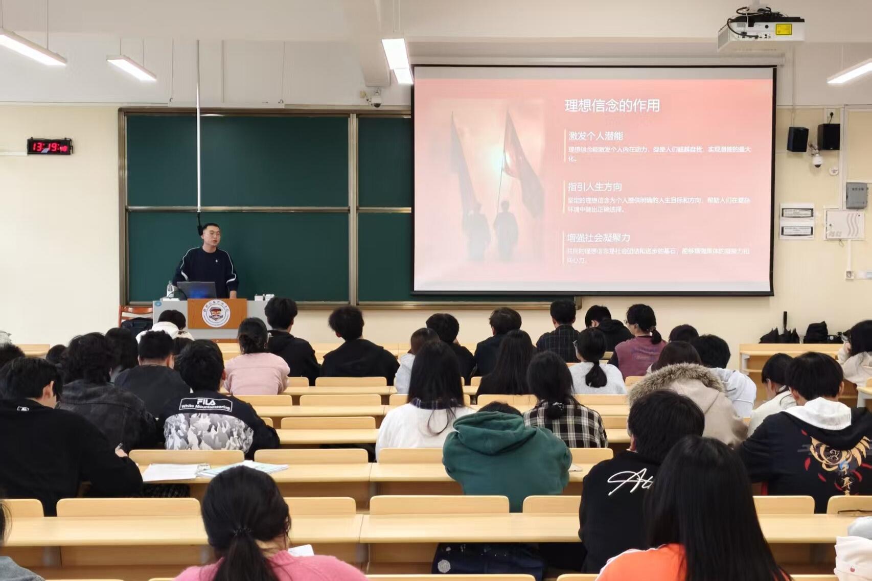 团课围绕“理想信念的时代内涵”与“青春使命的实践担当”两个维度展开。彭博涛结合“时代楷模”等先进典型的感人事迹,深刻阐述了坚定理想信念对青年成长成才的重要意义。他强调,新时代中国青年生逢其时、重任在肩,应当自觉将个人理想融入国家发展与民族复兴的伟大进程,在学习和实践中锤炼意志、增长才干。他鼓励同学们主动向团组织靠拢,以先进榜样为镜,用实际行动践行“请党放心,强国有我”的青春誓言。