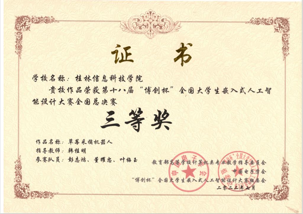 近日,第十八届“博创杯”全国大学生嵌入式人工智能设计大赛(全国总决赛)在北京成功举办,全国近200支队伍入围总决赛。通过两天的激烈角逐,最终获得5项国奖,获奖队伍均来自学校电子工程学院,其中全国特等奖1项,全国二等奖2项,全国三等奖2项,成绩在同类民办院校中名列第一。
