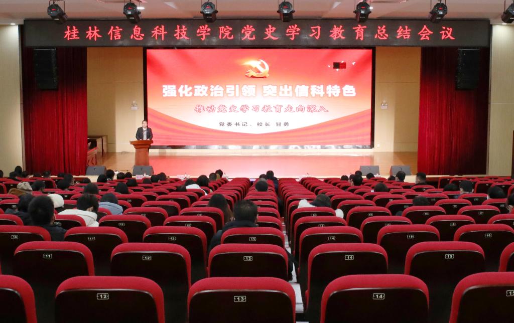 甘勇代表学校党委从四个方面总结了学校党史学习教育的主要做法、成效经验和工作成果。甘勇书记指出,党史学习教育开展以来,在上级党委的正确领导下,学校党委按照相关部署和安排,精心谋划组织,扎实有序推动各项工作,一是不断加强理论武装,坚持学深悟透,设置专题读书班,拓展校外红色教育基地,推进师生理论学习达到新水平;二是加强宣传引导,设置专题网站,开展“红色歌曲大家唱”“七一表彰典礼”等活动,推动党史学习教育实现新进步;三是坚持学史力行,制定《“我为群众办实事”实践活动征求意见工作方案》,坚持“一事一议、一事一策”的工作原则,确保“我为师生办实事”取得新成效;四是勇于担当作为,学校在党建、教育教学改革、人才培养和招生就业等方面均取得新突破,持续推动学校各项事业迈上新台阶。