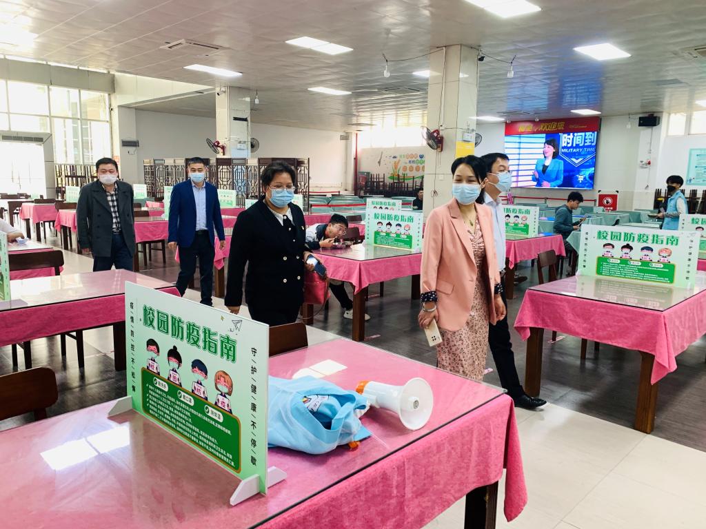 当天下午,新弘电集团领导和学校领导罗捷、梁丁丁、唐步洲、李飞分别带队前往校大门,看望慰问了坚守在一线的工作人员,了解当前返校学生的基本情况,叮嘱既要做好服务工作,也要提高个人防护意识。随后,领导们深入食堂、公寓等,了解食堂就餐环境、防控措施和学生入住情况。