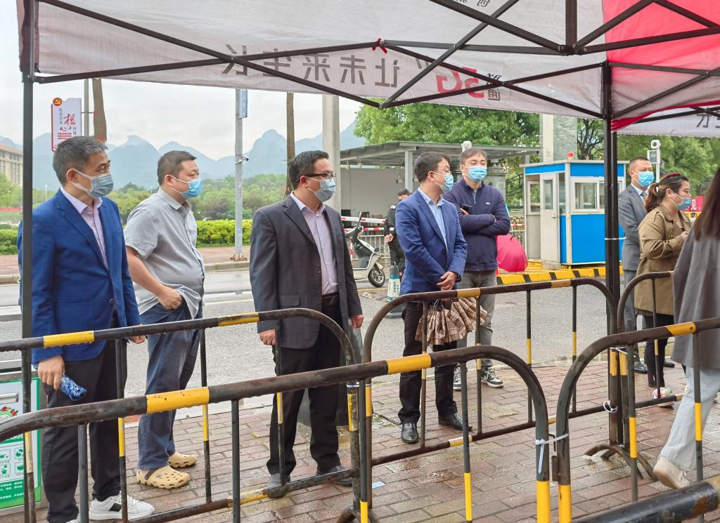 为严格落实常态化疫情防控措施,确保节假日期间校园安全有序,4月30日上午,学校党委书记甘勇,党委副书记、副校长唐步洲,校长助理李飞一行到学校大门、食堂、公寓等场地检查疫情防控工作,相关部门负责人陪同检查。