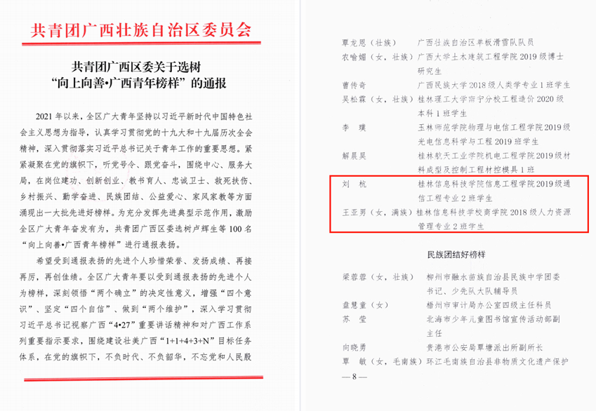 【喜报】学校共青团工作再创佳绩!多个集体和个人荣获共青团广西区委、共青团桂林市委“两红两优”、“向上向善•广西青年榜样”表彰