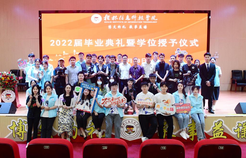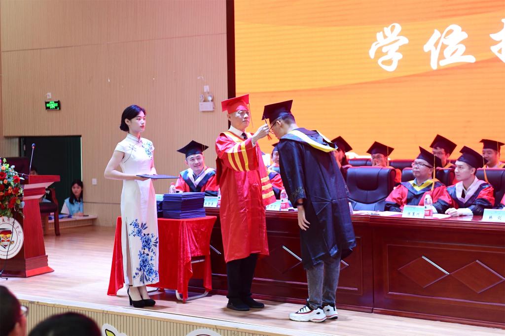 学校党委书记甘勇宣读了2022届优秀毕业生表彰文件,副校长陈智勇宣读学校2022届毕业生学位授予决定。学校领导分别为自治区优秀毕业生、学校优秀毕业生、优秀毕业生干部颁发获奖证书,为校友理事颁发聘书。