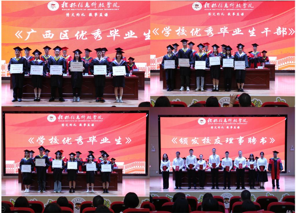 学校领导分别为自治区优秀毕业生、学校优秀毕业生、优秀毕业生干部颁发获奖证书,为校友理事颁发聘书