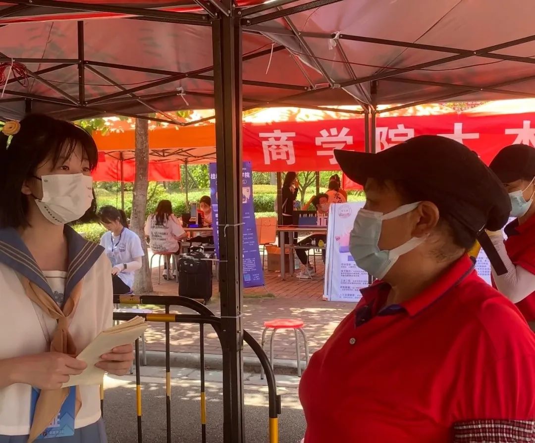 每一个新生进来,都会受到这些可爱的消杀阿姨们“洗礼”,而看着新生们朝气蓬勃的面庞,她心中也感慨万分:“虽然天气炎热,但我看到不管是志愿者还是新生们都很有精气神,希望他们之后能继续保持活力有朝气,不断发奋,不辜负父母的期待。”说着,她又走上岗位开始了消杀工作。
