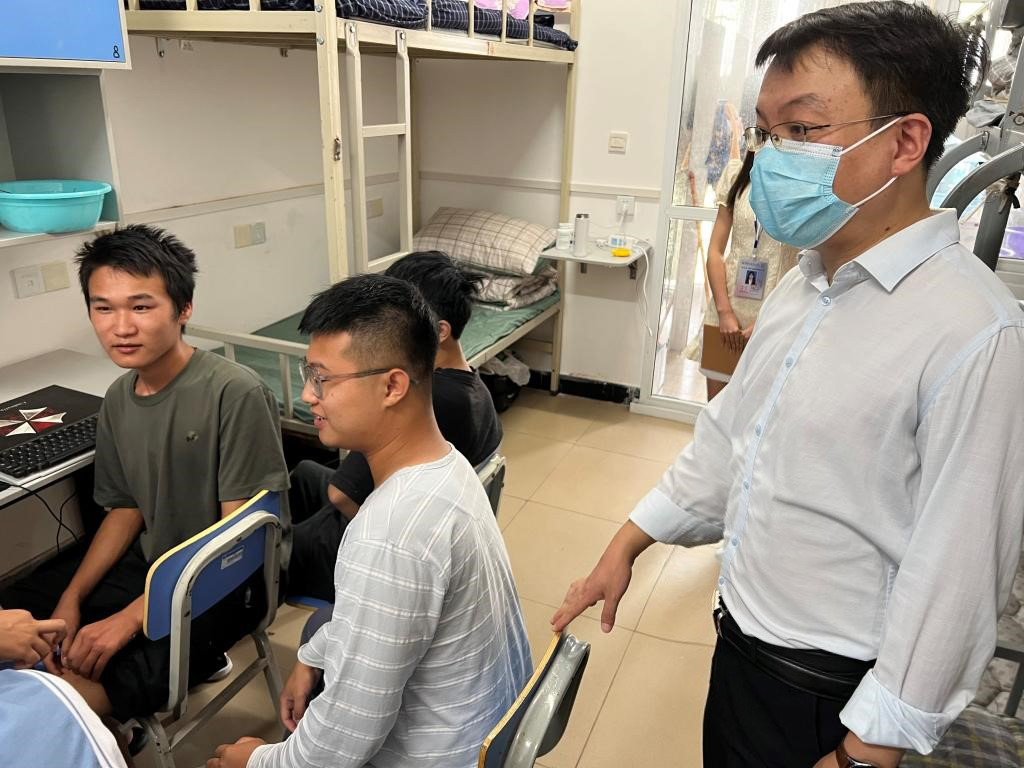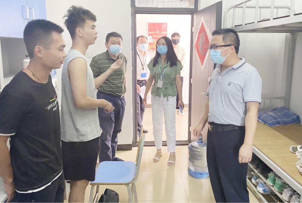 近日,校长梁丁丁,党委书记甘勇、副书记唐步洲实地走访慰问2022级新生,了解新生到校后的住宿情况。党委学生工作部、各学院负责人、党总支书记陪同慰问。