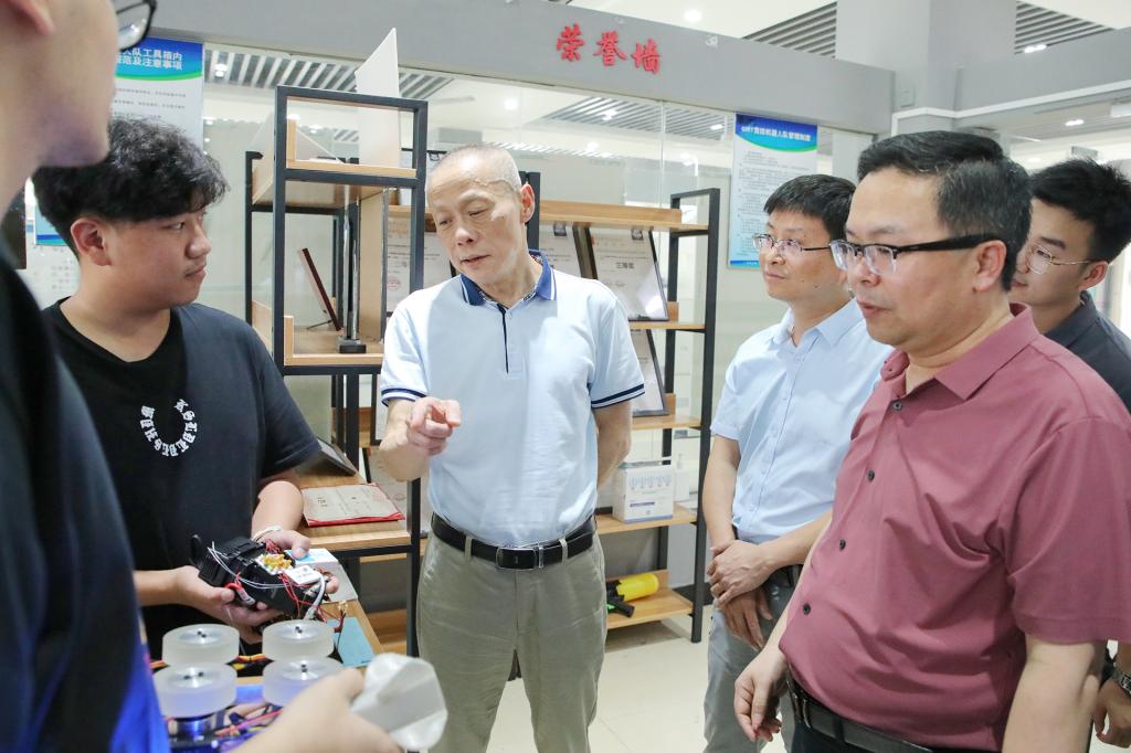 beat365官网历来高度重视大学生创新创业教育,产教深度融合,积极探索新工科改革。比赛前后,学校校长梁丁丁、党委书记甘勇、校长助理韩剑看望慰问并指导兴禾GIRT战队师生们,现场详细了解机器人的各项性能,关心比赛进展情况,校领导对同学们勇于创新、顽强拼搏的精神表示充分肯定,希望同学们坚定信心、戒骄戒躁、奋力拼搏,在日常训练中将专业学习、机器人研发、技能训练、赛事准备等相结合,以赛促练,以赛促学,练就基础扎实、工程意识牢固,具有工匠精神的应用型技术人才。