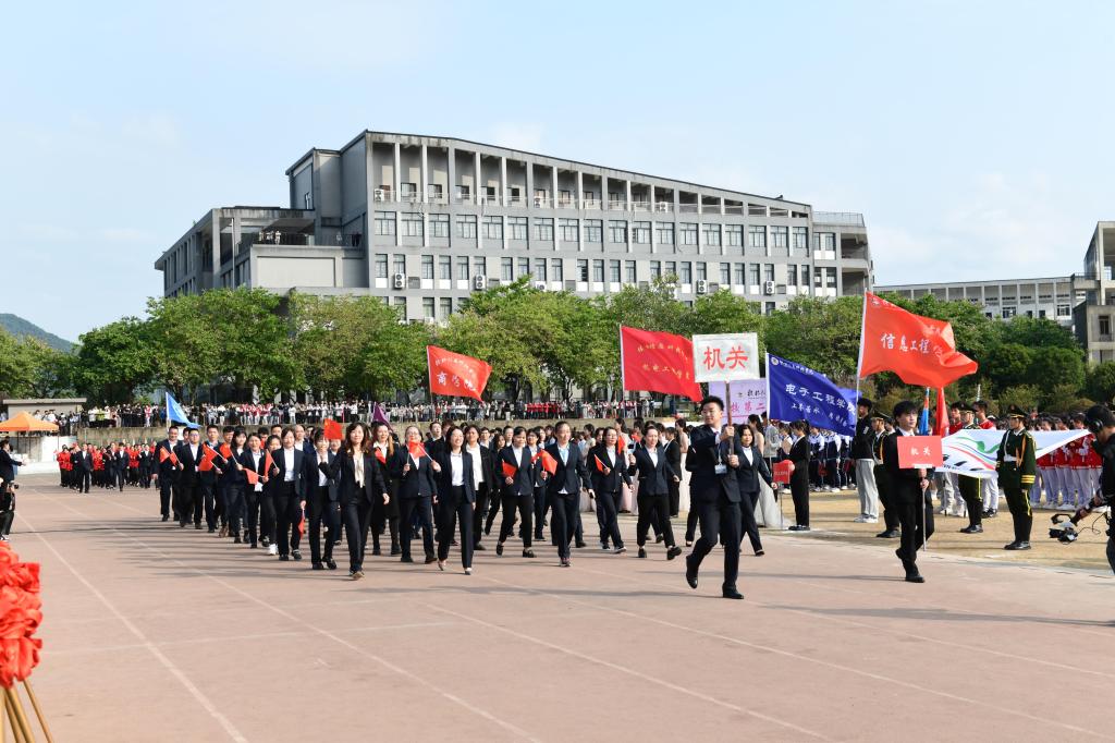 陈智勇副校长致开幕词。他指出,学校高度重视体育事业的发展,始终秉持“以体育智、以体育心”的理念,将体育精神融入立德树人根本任务,培养学生爱国、集体和社会主义精神以及奋发向上、顽强拼搏的意志品质。陈智勇强调,每一届运动会不仅是学校体育工作的一次大检阅,更是广大师生精神面貌和综合素质的一次集中展示,希望全体运动员、裁判员能够严守各项规则,做到公平公正公开,发扬“和平、友谊、公平、进步”的奥林匹克精神,以奋斗者的姿态,抢抓机遇、团结拼搏,共同为建成电子信息特色鲜明的高水平应用型大学“信科梦”而努力奋斗!