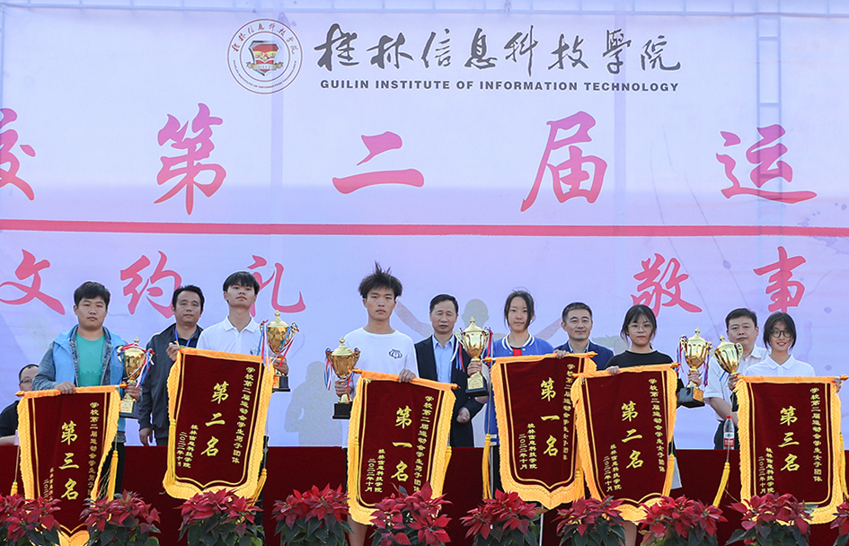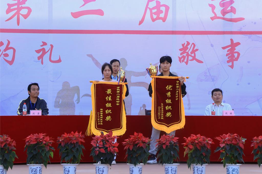 体委主任、校长助理李飞致闭幕词。他向取得优异成绩的运动员和运动团队表示热烈的祝贺,向全体工作人员表示衷心的感谢。李飞指出,本届运动会共有697名学生组运动员,253名教工组运动员参加53项比赛,教工组共计2项、学生组共计3项打破学校运动会纪录,取得了可喜的成绩。在“更高、更快、更强”体育精神激励下,各代表齐心协力、勇创佳绩,充分展现了全校师生积极进取、顽强拼搏的精神风貌和“友谊第一,比赛第二”的良好风尚。李飞强调,赛场上的胜负是暂时的,但自强不息的精神是永久的,战胜自我、超越自我、自强不息、崇尚卓越是人类追求的永恒主题,也是我们信科人不断攀登的精神瑰宝,希望全校师生以本次运动会为契机,发扬团结拼搏精神,在今后的各项工作和学习中,再创佳绩。
