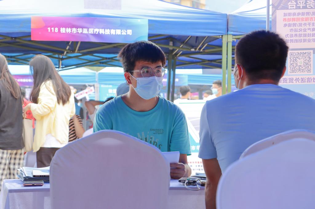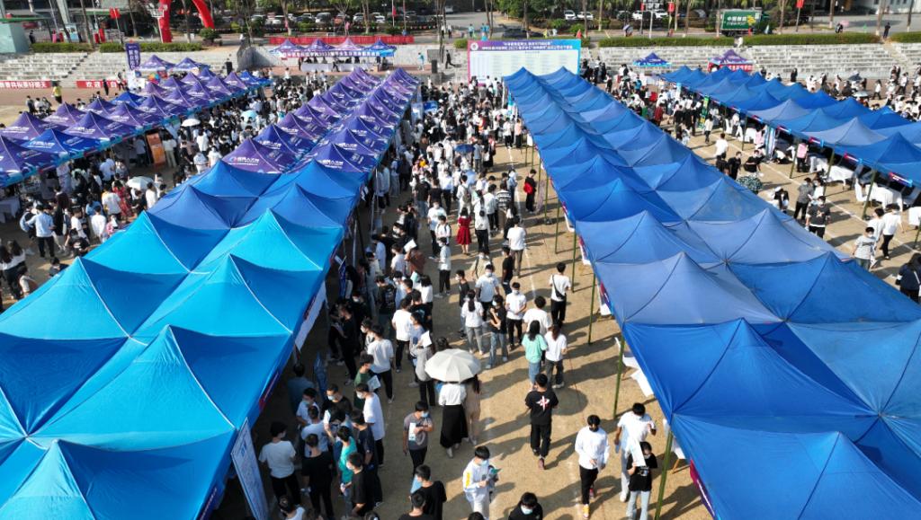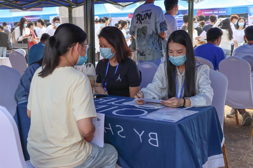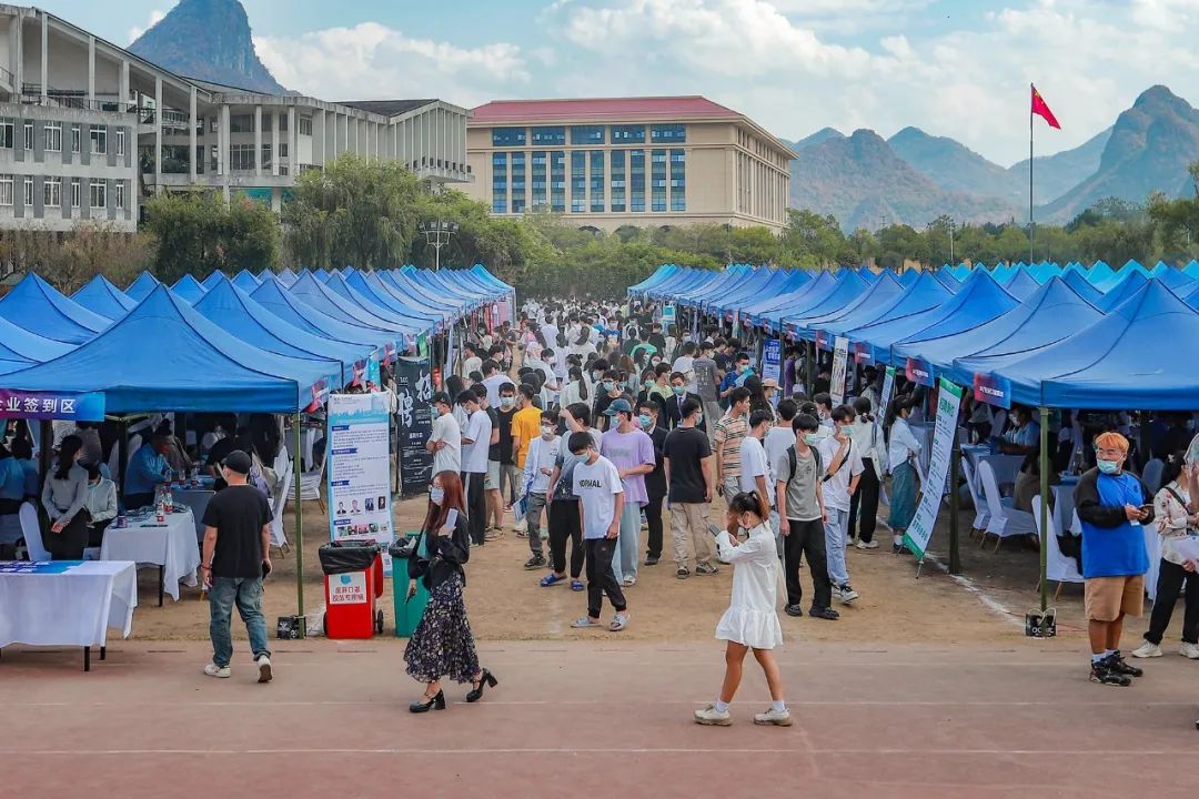 11月11日,碧空如洗,惠风和畅,beat365官网在田径场举行2023届毕业生“双向选择”洽谈会,来自区内外近300家企业提供信息技术、软件开发、机械工程、财务管理、市场营销、环境设计、国际贸易等10000余个就业岗位。根据疫情防控最新要求,不能入校招聘的企业采取线上直播方式同期招聘,参加双选会的单位和个人再创历史新高。