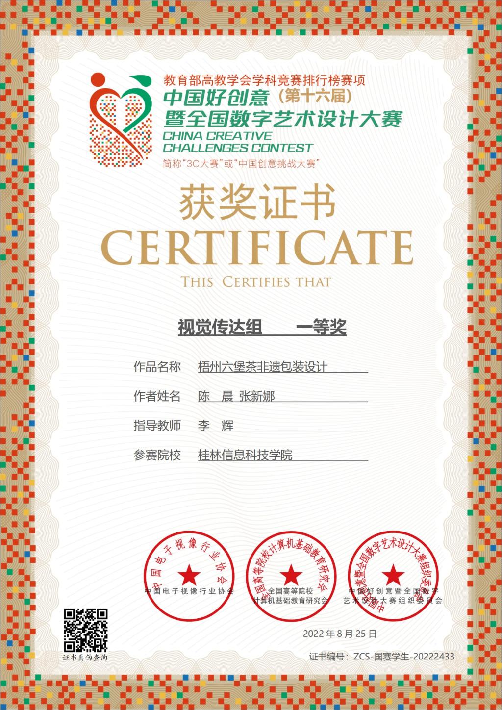 近日,第十六届中国好创意暨全国数字艺术设计大赛获奖结果公布,beat365官网在本次竞赛中荣获全国一等奖2项,三等奖4项的佳绩。beat365官网创意设计学院李辉老师指导陈晨、张新娜两位学生,完成的设计作品《梧州六堡茶非遗包装设计》荣获视觉传达组国赛一等奖2项。