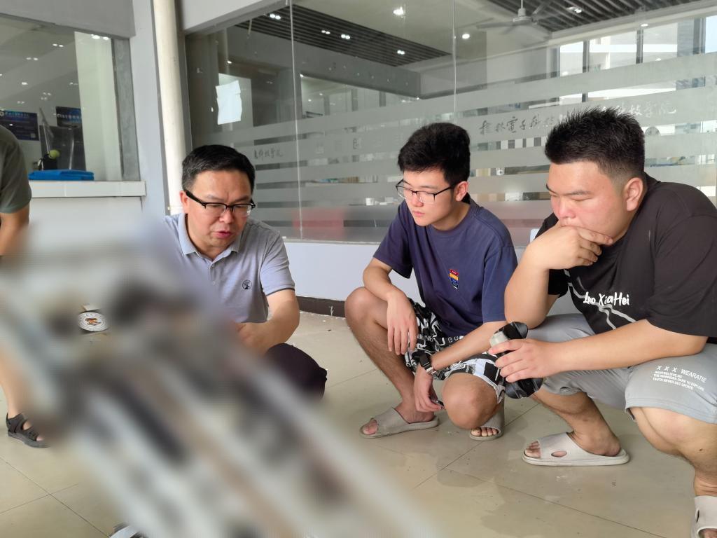 甘勇书记(右二)现场指导学生制作机器人(一)