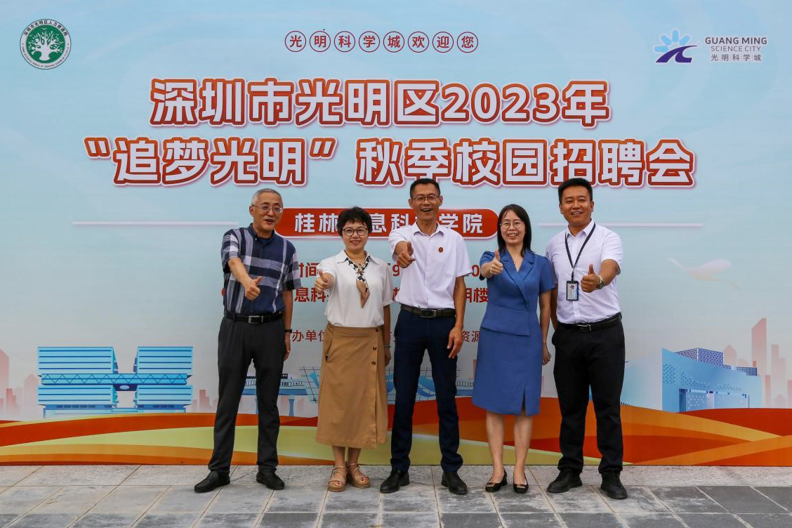 为贯彻落实党的二十大提出的“实施就业优先战略”,9月21日—22日,学校联动深圳光明区人力资源和社会保障局、深圳人才中心、桂林市叠彩区人力资源和社会保障局和桂林人才网共同举办的政校企联动“促就业、赢未来”校园招聘会在学校敦明楼和德远楼成功举办。来自两地的70余家企业踊跃报名参会,提供就业岗位2100余个。学校刘跃峰副校长,深圳市光明区人力资源局练秀雁处长、麦玉珍主任、桂林市叠彩区人力资源和社会保障局李彦斌局长、吕孝功副局长、就业服务中心王湛辉主任、桂林人才网王冠华总经理、学校就业指导服务中心负责人、二级学院党委书记以及毕业班辅导员出席招聘会现场,并指导毕业生求职。