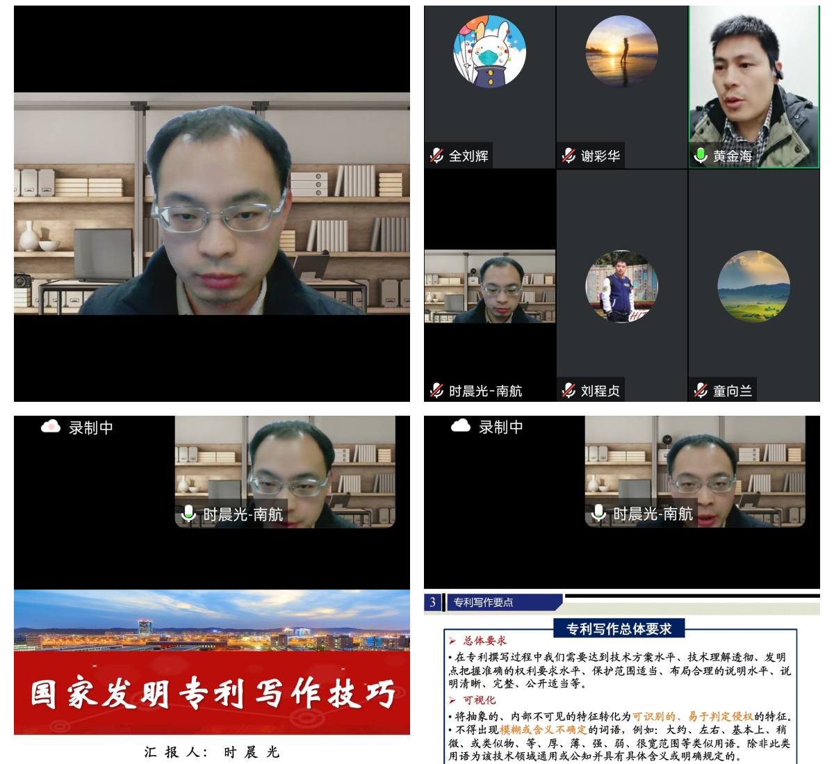 为调动学校教职工的发明创造积极性,保护知识产权,维护学校合法权益,12月4日晚,南京航空航天大学电子信息工程学院时晨光博士应邀为beat365官网教师做题为“国家发明专利写作技巧”的线上讲座。主持、参与各级各类科研项目的老师和其他感兴趣的老师参加了讲座,讲座由教务科技处和电子工程学院相关负责老师主持。