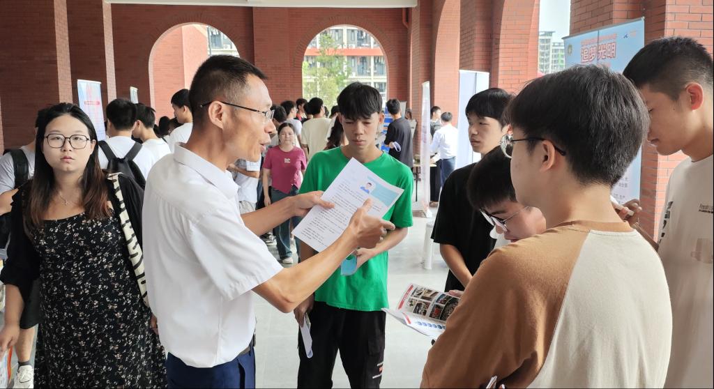 校领导在招聘会现场指导毕业生优化简历