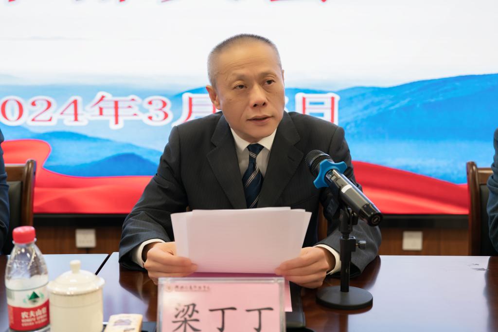 原校长梁丁丁同志向学校董事会给予的信任表示感谢;向自治区教育厅、桂林市临桂区两级党委政府关心支持表示感谢;向各兄弟院校、校企合作单位、银校合作伙伴、社会各界朋友给予学校教育事业改革发展和个人的关心支持表示感谢;并对解庆林同志新任学校校长表示祝贺。梁丁丁表示,两年多的任职期间,和同志们精诚团结,同心同欲,共同努力,共克时艰,一起度过了信科转设转型、爬坡过坎、稳中求进、以进促稳的关键两年,确保了校园安全稳定,工作中与同志们也结下了同患难、共进退的战友情谊,这份情谊弥足珍贵,值得珍惜一生。梁丁丁表示,从今天起,作为一名学校顾问,会继续竭尽所能,为学校的高质量发展尽自己的一份绵薄之力。最后,梁丁丁祝学校事业高质量发展未来可期!祝同志们身体健康!工作顺利!阖家幸福!