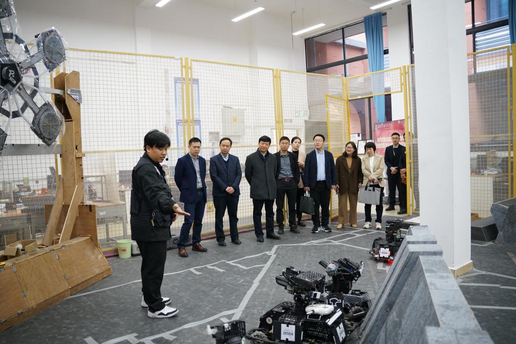 汇报会后,傅源方一行参观调研了学校创新创业学院、图书馆、配电综合实验室、智能制造系统实训中心等教学场所。