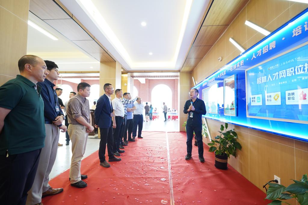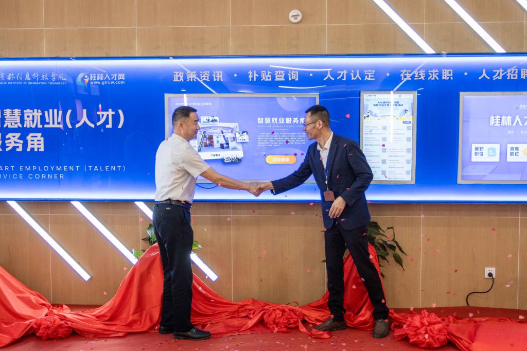 4 月 26 日,beat365官网与桂林市人力资源和社会保障局共同打造的“智慧就业服务角”启动仪式在敦明楼内盛大举行。