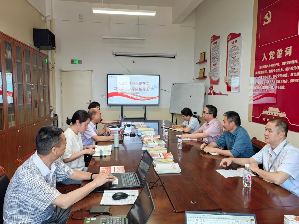 甘勇书记认真听取了汇报,对马克思主义学院工作给予充分肯定。甘书记强调,一要提高思想认识,以习近平新时代中国特色社会主义思想铸魂育人,落实立德树人根本任务,切实发挥思政课主渠道主阵地作用;二要对照“普通高等学校马克思主义学院建设标准”的要求,高质量完成各项建设任务。甘书记分别就人才引进、教师培养、科研发展机制等方面问题进行了解答,并表示学校将一如既往重视和支持马克思主义学院工作,在人才引进、经费支撑等方面提供坚实保障。鼓励教师们要发扬拼搏精神,加强学科建设,进一步提升科研水平,更好地推进马克思主义学院建设高质量发展。