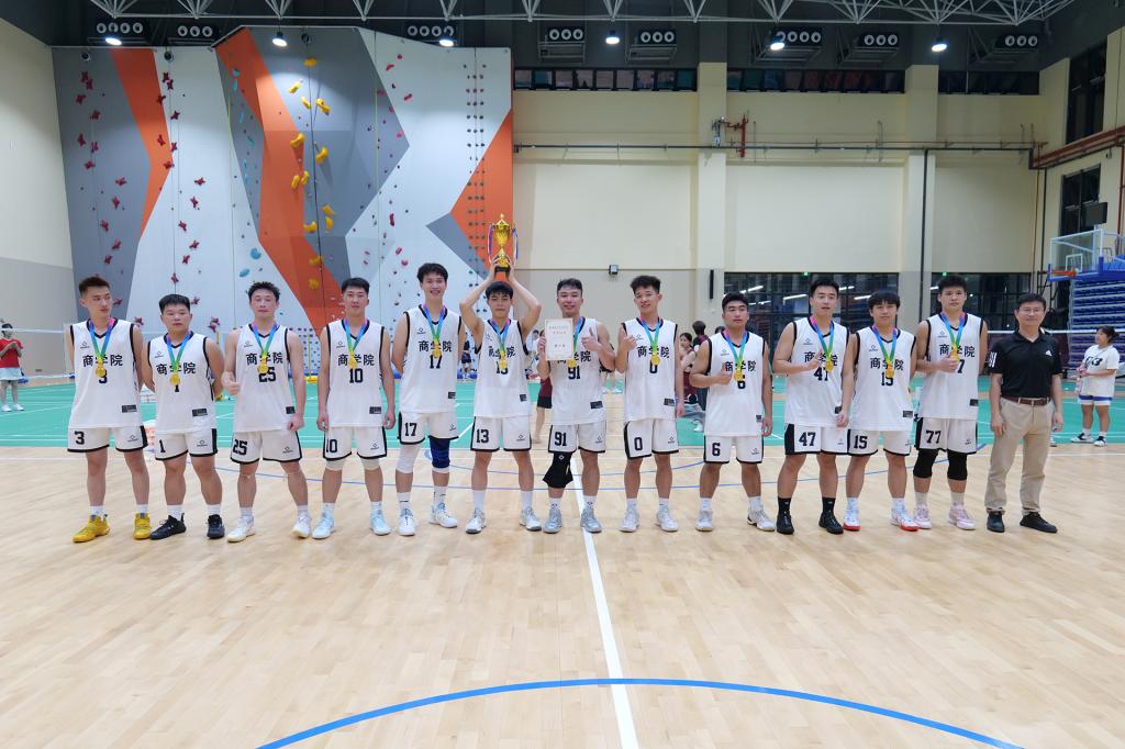 进入第四节,双方球队更是全力以赴,展开最后的决战。商学院男篮凭借球员们的出色发挥,逐渐将比分拉开。然而,信息工程学院男篮并没有放弃,他们通过调整战术,加强防守,一度将比分追近。但最终,商学院男篮凭借更加稳健的发挥和更加出色的团队配合,成功守住了领先优势,赢得了这场比赛的胜利,总比分2∶0赢得了本年度“五四杯”男子篮球冠军。