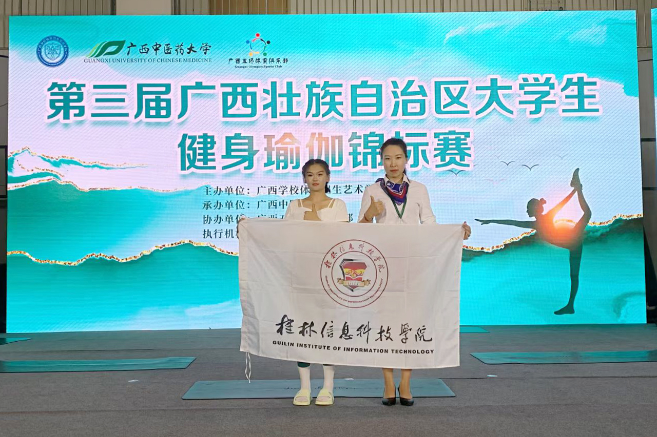 近日,由广西学校体育卫生艺术学会主办第三届广西壮族自治区大学生健身瑜伽锦标赛在广西中医药大学顺利举行。beat365官网体育与健康学院王蕊、钟依岑两位老师带队参赛,周韦霜同学荣获体育专业组女子单人冠军。