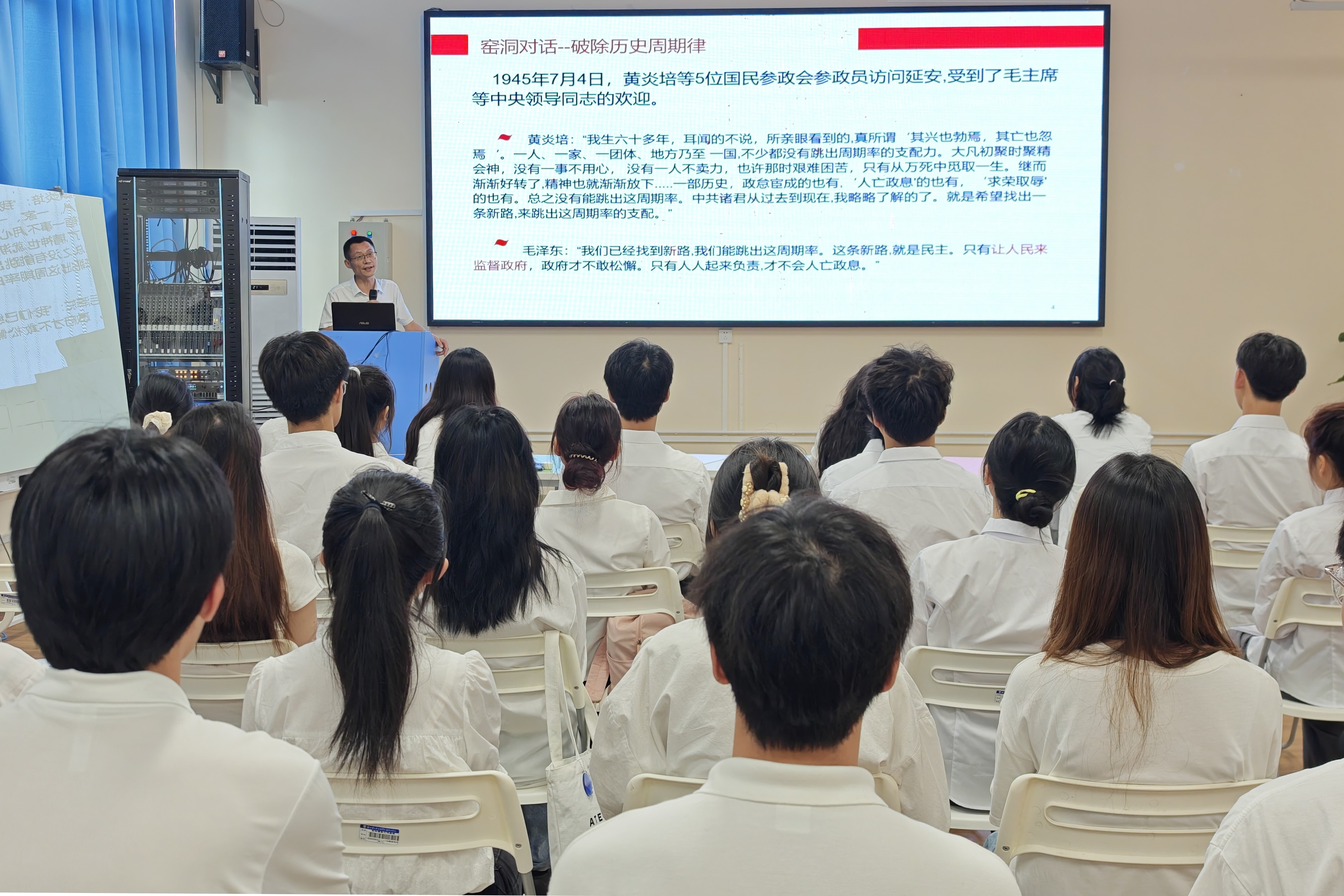 学校副校长刘跃峰带领全体同学回顾党的纪律建设历程