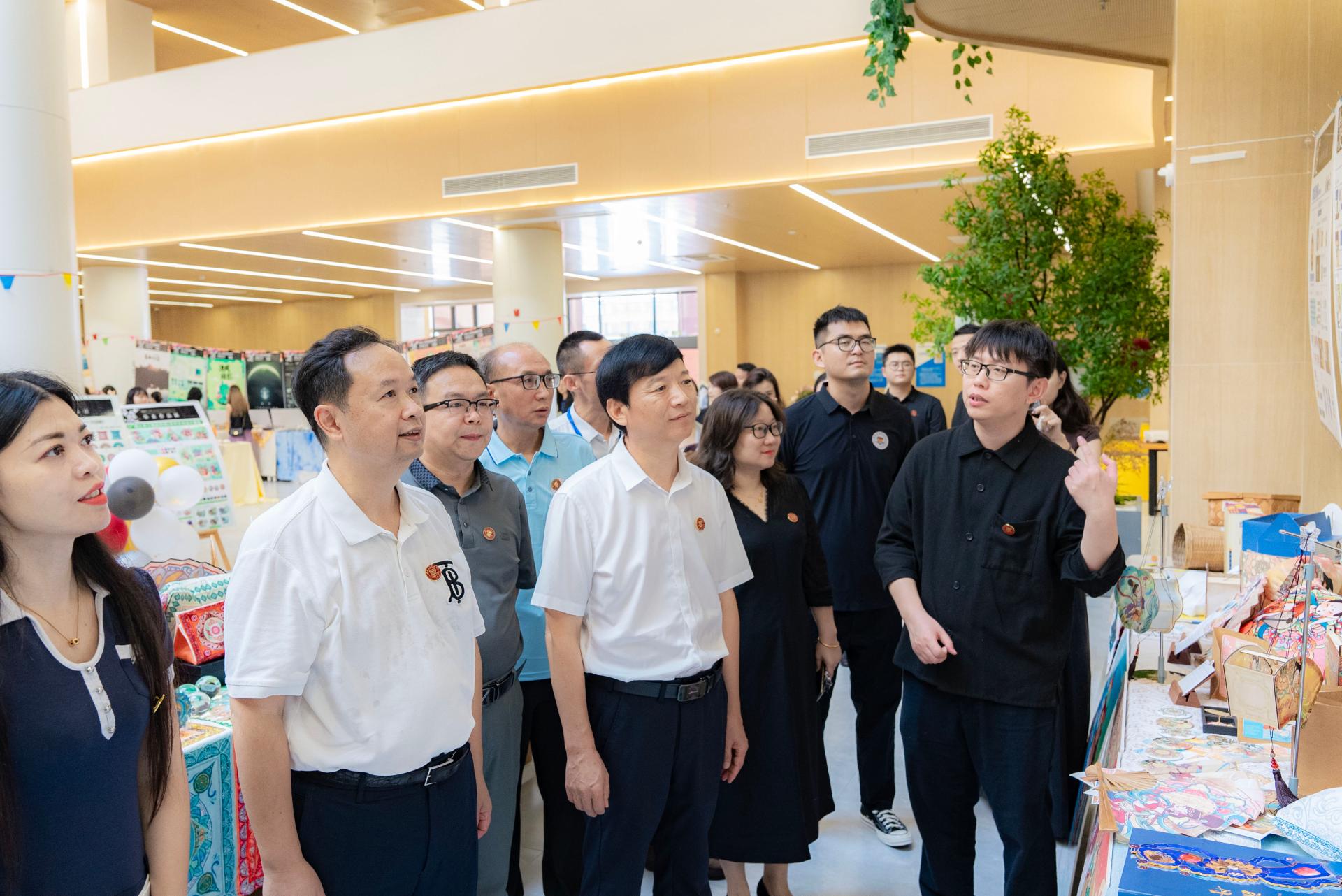 随后,嘉宾们共同走进了这场创新创意与艺术的盛宴,参观了涵盖艺术类和工程设计类专业的130余件高质量作品。同学们的作品聚焦视觉设计、动画IP、人居环境、智能交互、医疗健康、群体关怀等方面,紧跟国家发展战略,紧密对接社会需求。