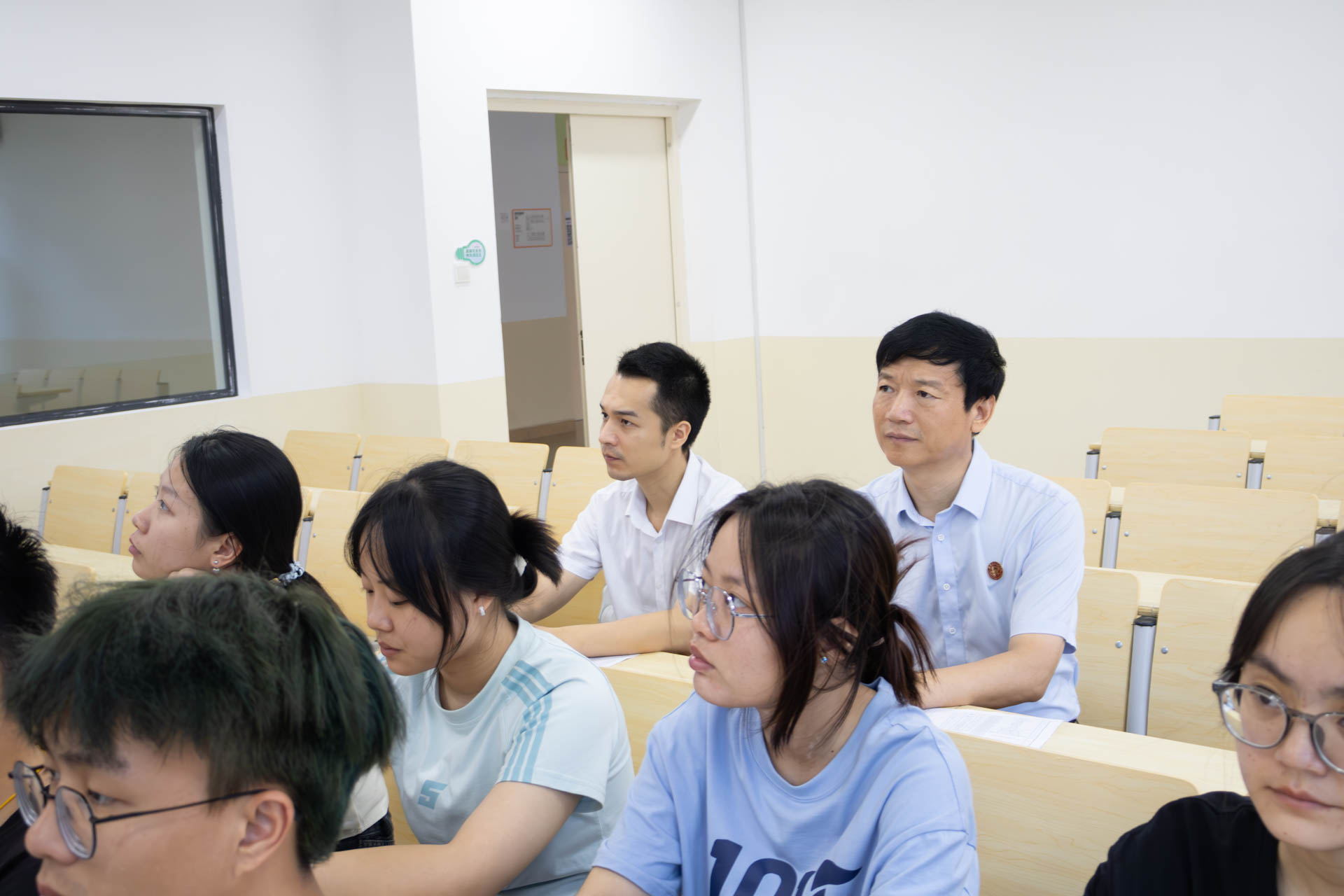 校长解庆林(后排:右)、财务总监陈昱州(后排:左)听课