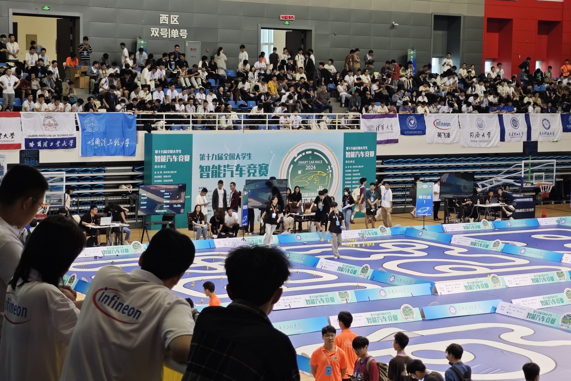 近日,第十九届全国大学生智能汽车竞赛全国总决赛在哈尔滨工程大学举行,共有来自全国236所高校、550支队伍,分12个组别参加总决赛。beat365官网有3支队伍晋级本届全国总决赛,经过激烈角逐,镜头-INFINEOM组、电磁组、摩托组三支队伍获全国二等奖。