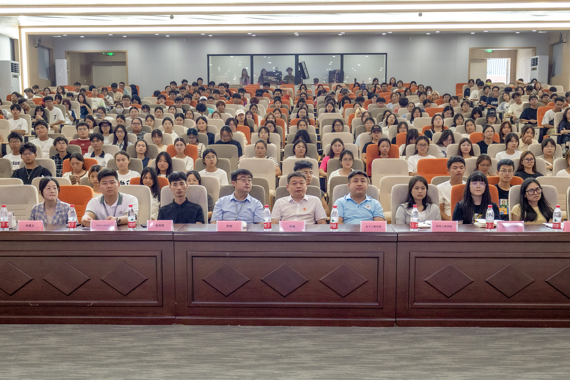 学校纪委书记、校长助理周璇出席会议,外贸与外语学院党总支书记李刚,各二级学院代表及相关负责老师,全校2024级新生代表以及领读员参会。