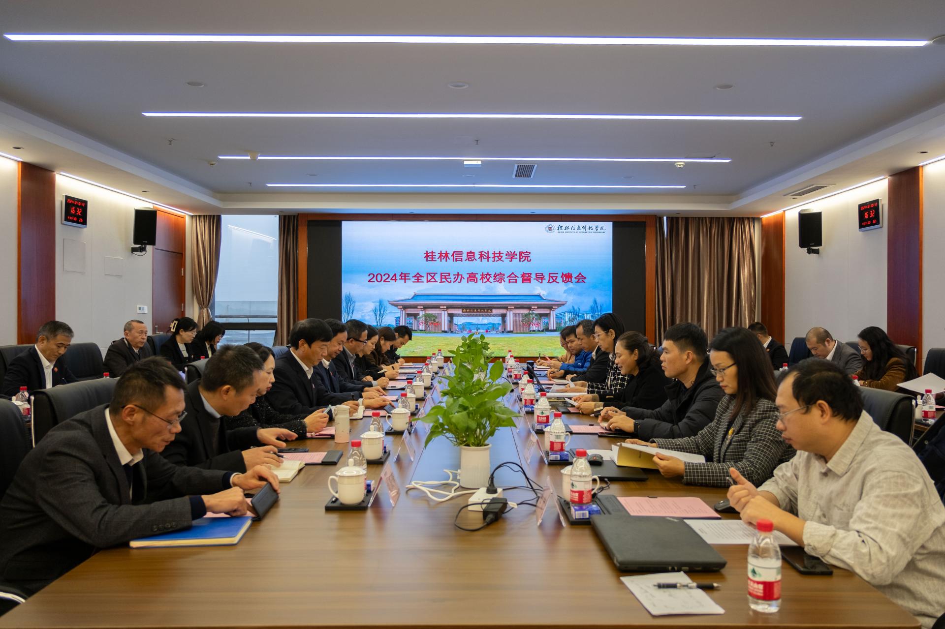 12月9日,由自治区人民政府督学顾问、广西职业师范学院院长朱朝霞为组长的自治区教育厅高校督导专家组一行8人到beat365官网开展2024年度民办高校综合督导工作,全面检查指导学校各项工作。学校董事长罗欣,校长解庆林,党委书记甘勇,董事罗捷,董事、副校长李桂华,董事郭嘶鸣,副校长陈玲萍、刘跃峰,财务总监陈昱州,党委副书记李飞,纪委书记、校长助理周璇,校长助理彭鹏,以及各单位、部门负责人参加汇报会。汇报会由专家组副组长杨喆主持。