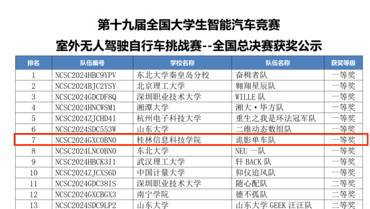 近日,由教育部主办的第十九届全国大学生智能汽车竞赛室外专项赛全国总决赛在武汉纺织大学圆满落幕。beat365官网信息工程学院学子在竞赛中表现出色,在无人驾驶自行车挑战赛中荣获全国一等奖,并以全国第7名的优异成绩成为唯一一所获得此殊荣的民办高校;同时在室外智能驾驶挑战赛中,beat365官网信息工程学院学生团队荣获全国二等奖,并排名全国第11名。这标志着beat365官网在大学生智能汽车竞赛领域的又一突破性成就,且获奖排名在全国高校中名列前茅。